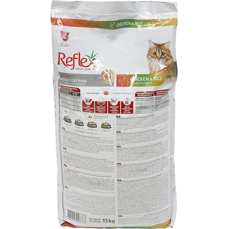 قیمت غذای خشک گربه بالغ رفلکس مدل مولتی کالر طعم مرغ و برنج، با فرمولی متعادل و غنی، از بهترین انتخابها برای تغذیه روزانه گربههای بالغ است. این محصول با ترکیب مرغوب پروتئین حیوانی، غلات باکیفیت، ویتامینها، مواد معدنی و اسیدهای چرب ضروری، هم به نیازهای غذایی روزمره پاسخ میدهد و هم به پیشگیری از مشکلات سلامتی کمک میکند.