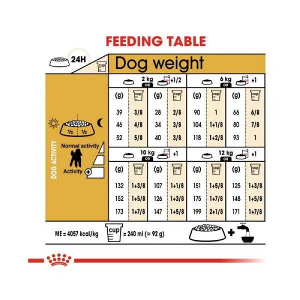 - میزان مصرف روزانه بر اساس وزن و فعالیت بدنی سگ تنظیم شود.