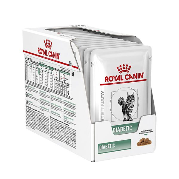 گربه‌های مبتلا به دیابت، به دلیل اختلال در تولید یا عملکرد انسولین، دچار افزایش سطح گلوکز خون می‌شوند و همین امر می‌تواند مشکلات متابولیکی و ارگانیک متعددی ایجاد کند. تغذیه مناسب نقش اساسی در کنترل این بیماری دارد. پوچ گربه دیابتیک رویال کنین با هدف مدیریت سطح قند خون و کاهش نوسانات گلوکز روزانه طراحی شده است.